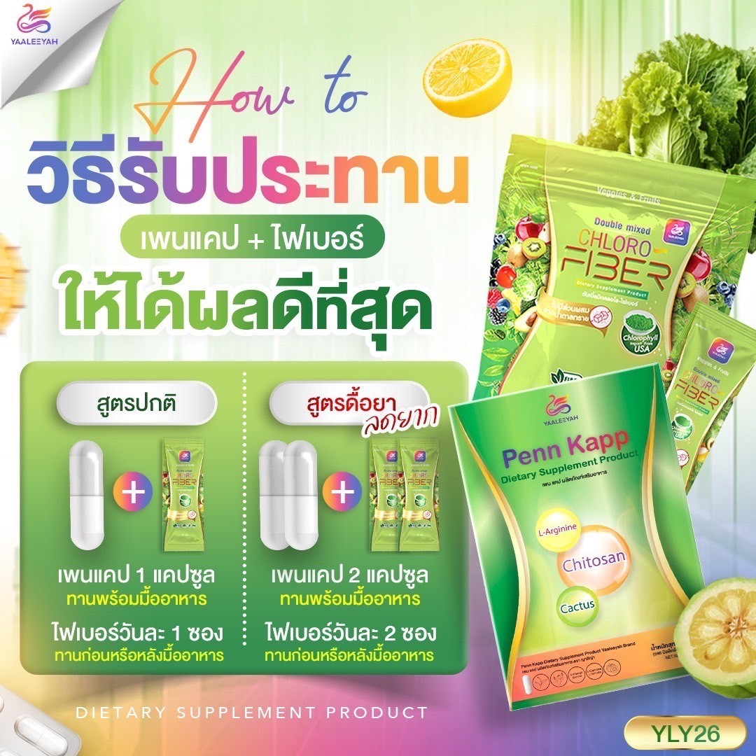 เพนแคป 2 แคปซูล ทานพร้อมมื้ออาหาร + ไฟเบอร์วันละ 2 ซอง ทานก่อนหรือหลังมื้ออาหาร